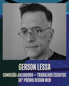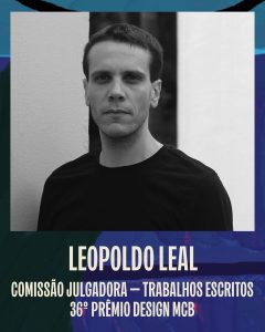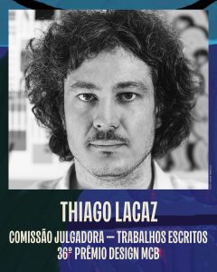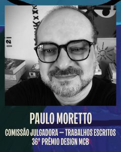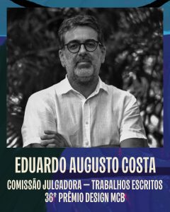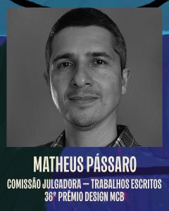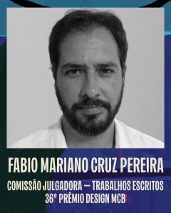 Bacharel em Desenho Industrial pela UFRJ, doutor em História Social pela UFF, Pesquisador do Programa de Pós-graduação em Design da FAU USP e do grupo de pesquisa História, Teoria e Linguagens do Design do LabVisual/FAU USP. Foi coordenador das Comissões julgadoras dos Trabalhos Escritos Publicados/não Publicados do 27º e 28º Prêmio Design MCB.