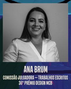 Jurada nas edições anteriores do Prêmio Design Museu da Casa Brasileira e integrante atual do júri, Anamaria Amaral Rezende-Galeotti é arquiteta e designer, doutora em Arquitetura e Urbanismo pela FAU USP, onde realizou pós-doutorado e atua como pesquisadora colaboradora no LabImagem. Docente nos cursos de Design e Tecnologia em Produção Multimídia (Senac São Paulo) e Design Gráfico e Design Digital (Universidade Anhembi Morumbi), participa de redes de pesquisa, eventos e comissões científicas nacionais e internacionais, contribuindo para o debate sobre design, visualidade e processos criativos.